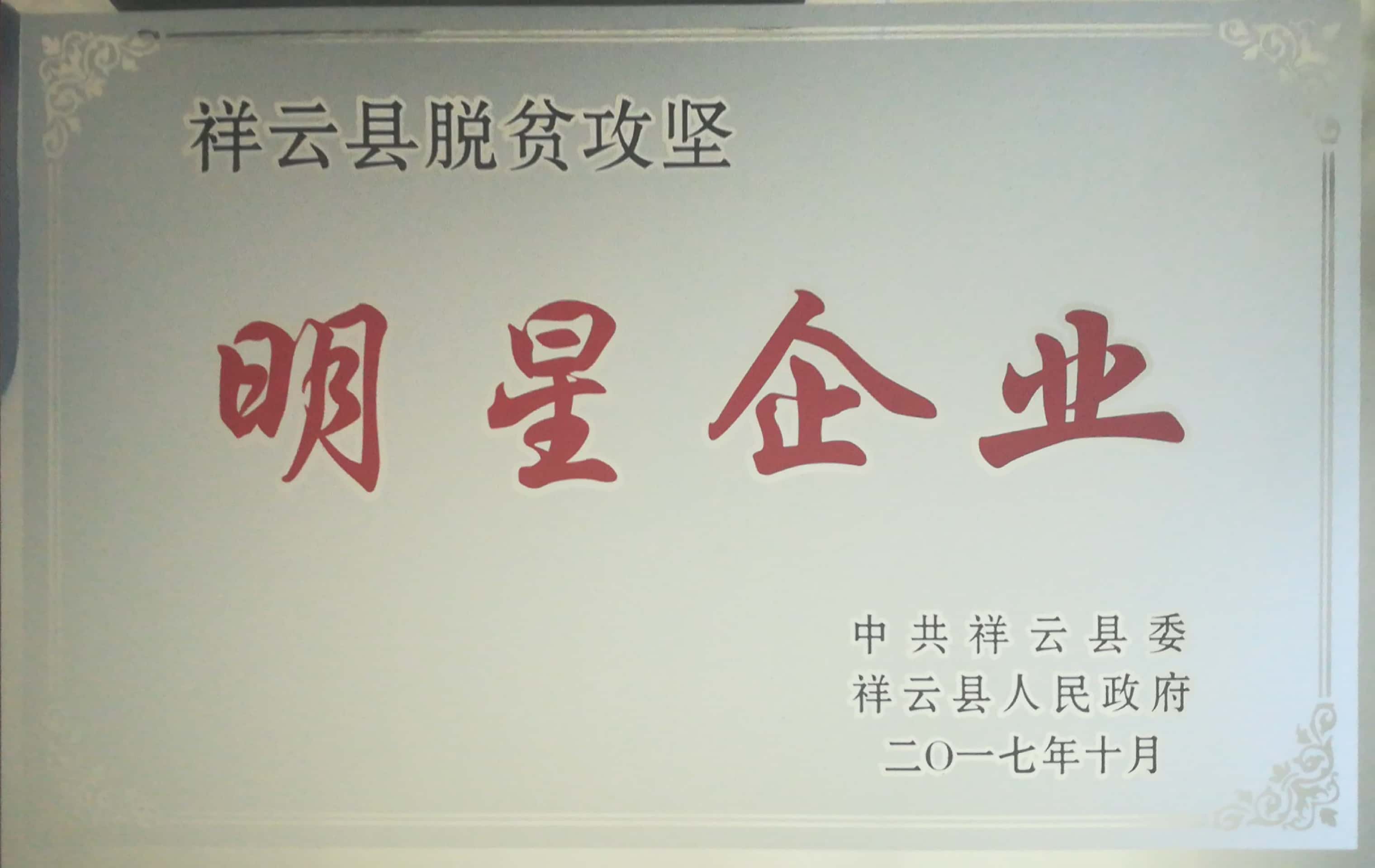 皇正集团荣获祥云县2017年“脱贫攻坚明星企业”荣誉称号